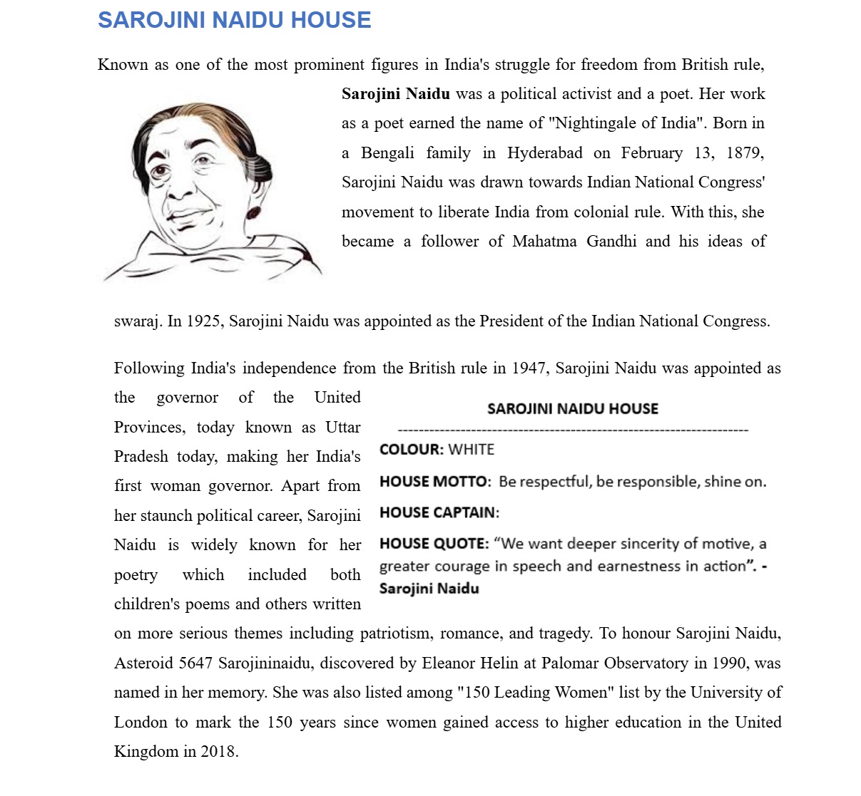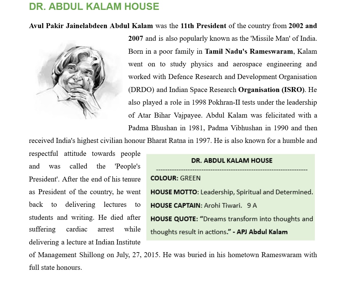 The students of BSKD Public School are divided into four school houses system, which helps them to learn sense of community. Throughout the year, these houses enthusiastically participate in various events held in the school, where students from each class represent their house. The house-based system encourages lively rivalry among students and provides a platform for students to show their talents, which ultimately contributes to the development of the academic environment in the school.